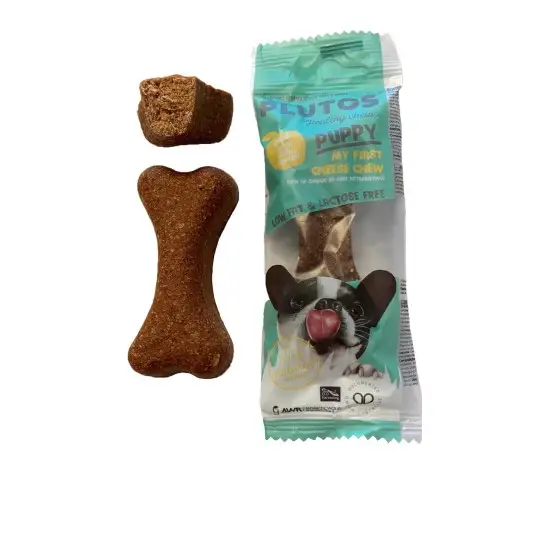 Les os à mâcher Plutos favorisent une mastication saine, contribuent à l'hygiène dentaire en aidant à réduire la plaque et le tartre, et occupent votre chiot pendant de longues périodes. De plus, la caséine, une protéine présente dans le fromage, est facile à digérer et offre un apport nutritif bénéfique pour les chiots en croissance.